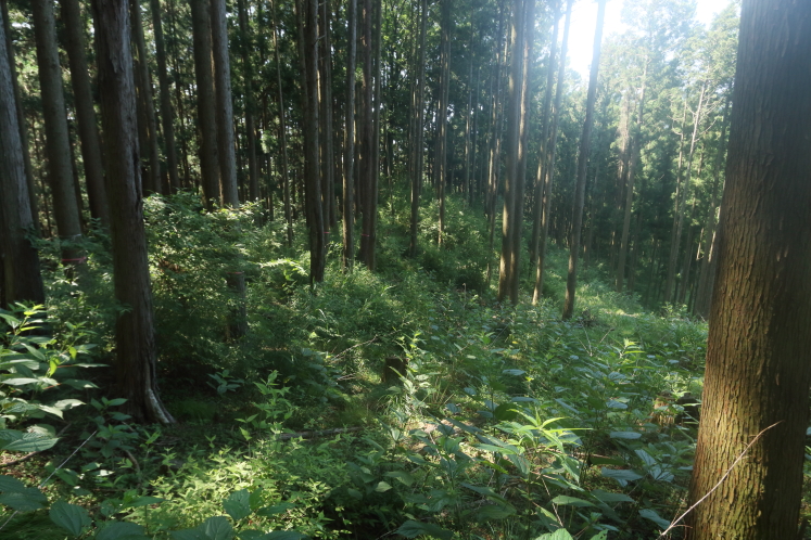 登りに使ったルート(もはや登山道とは言い難い)は、登る分にはまあ大丈夫だが、下りだと方向を誤りそうで使いたくない。そこで、もうひとつのルートから下山することにした。集落から谷倉山に至るルートは二本あるのだ。