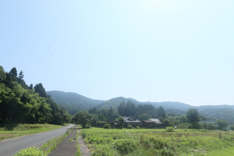 藪を踏み分け踏み分け下っていくと、やがて舗装路が見えた。