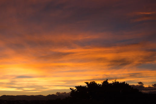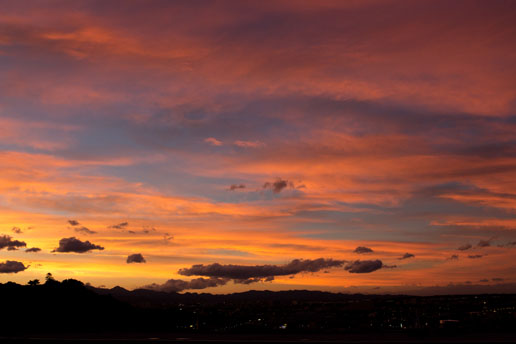 台風も過ぎ去り、西の空には真っ赤な夕焼け。