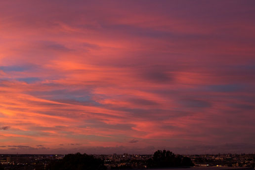 空がすごい色に染まってました。