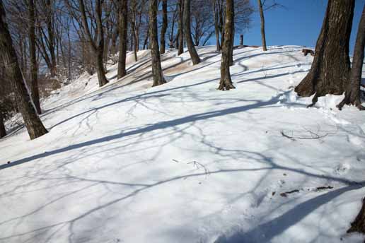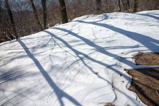 風が吹き抜けるので、山頂には雪があまりありませんでした。