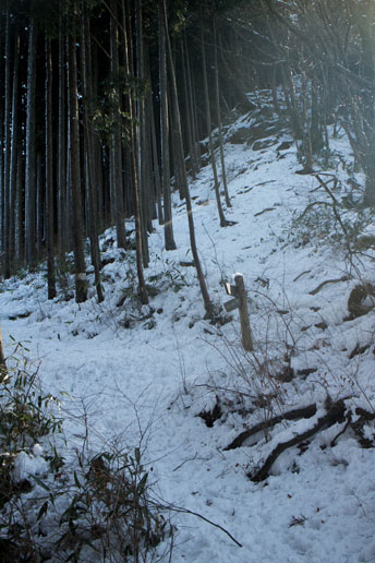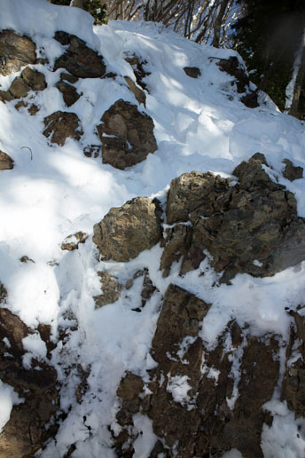 雪が降り積もっていて、岩場がよく見えません。何度も足を滑らせました。
