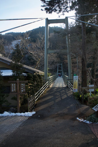 集落を超え、多摩川にかかる吊り橋を渡ると、駐車場はすぐそこです。