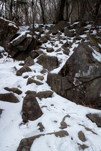 雪の乾徳山で岩登り その2〜広々とした草原からゴツゴツした岩場へ
