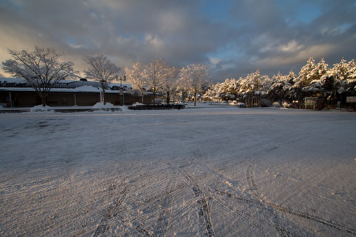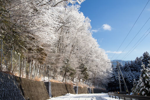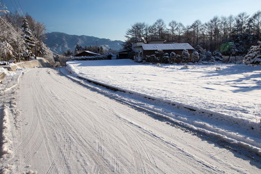 雪化粧した里の朝 – 鳴沢
