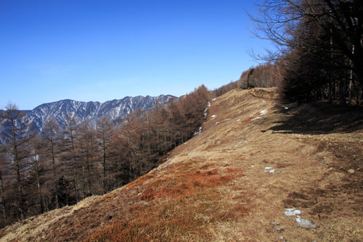 小袖乗越に車を停めて、まずは展望のない樹林帯を黙々と登ります。