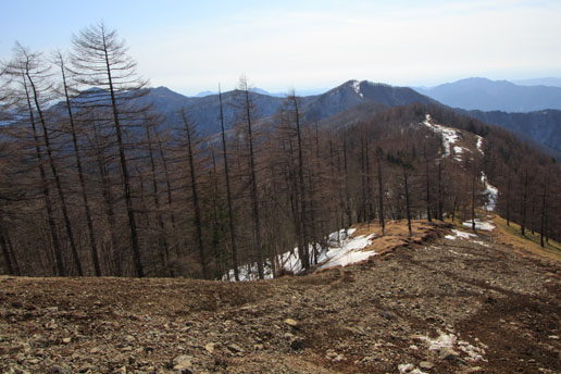 石尾根を見渡します。先週は左端の方から歩いて来たのです。