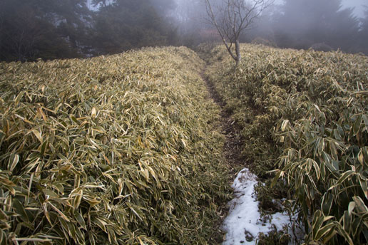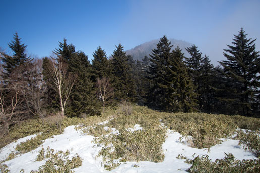 振り返って毛無山。山頂はだいぶガスに覆われてきたようです。