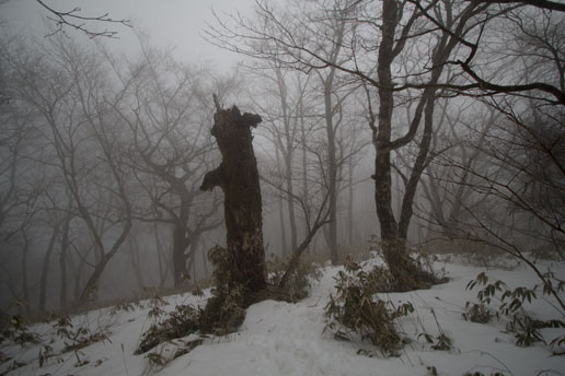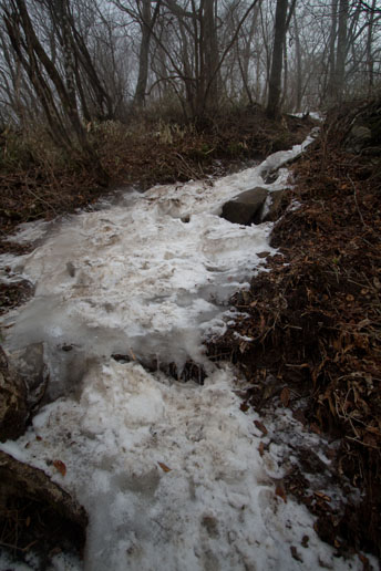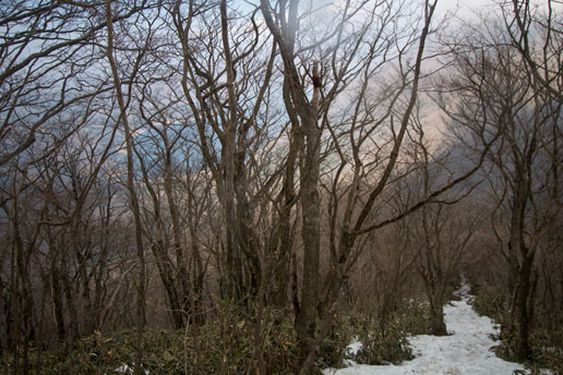 端足峠から下山します。竜ヶ岳はまたこんど。この辺りまで来るともう雪はありません。