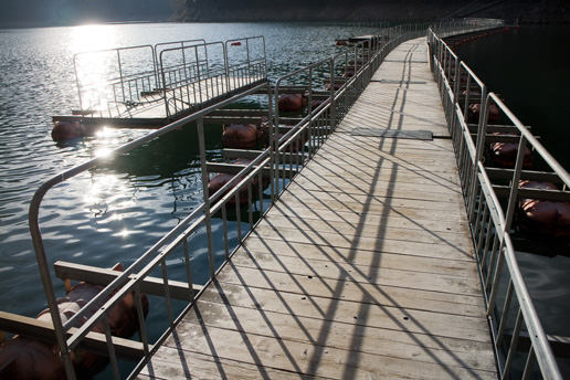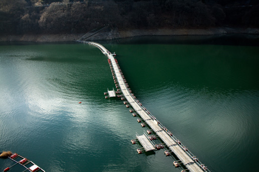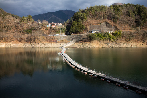 対岸の遊歩道からは、山頂にピラミッドをのっけたような鷹ノ巣山の姿がよく見えます。