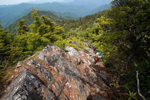 埼玉県最高峰の三宝山を超えると岩稜地帯になります。