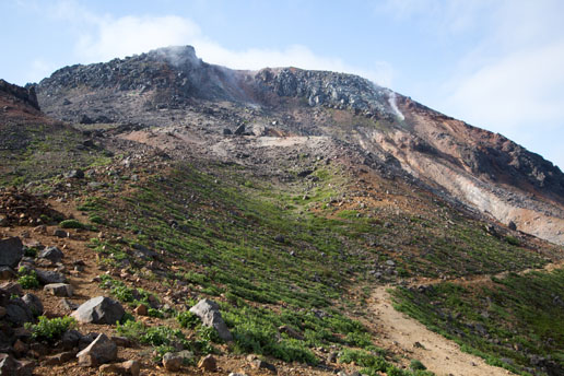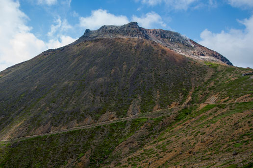 いまも活動を続ける活火山で、山肌から白い噴煙を上げています。