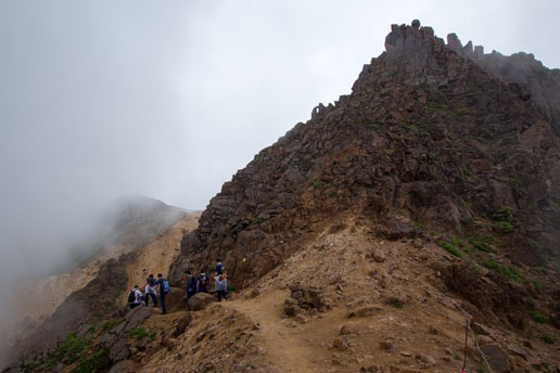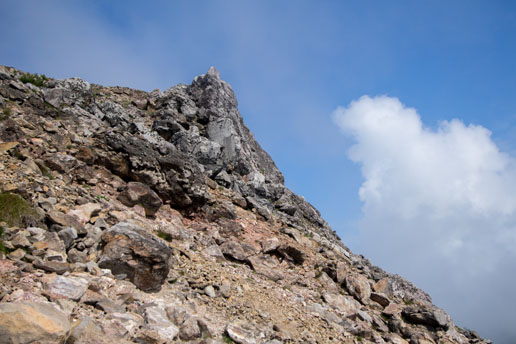 朝日岳へは岩稜地帯を超えていきます。