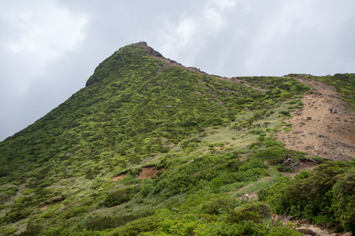 とんがりタイプの朝日岳。山頂は2000m以下とは思えない高度感でした。