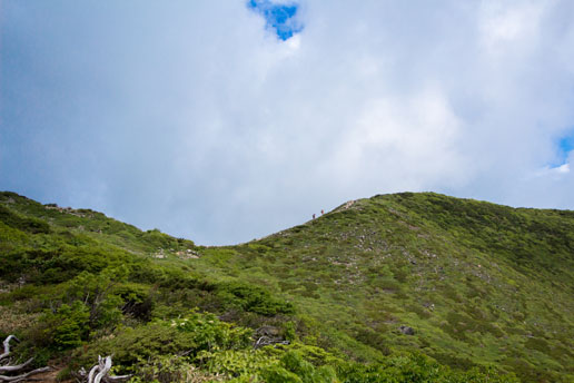 朝日岳から先は緑の稜線です。