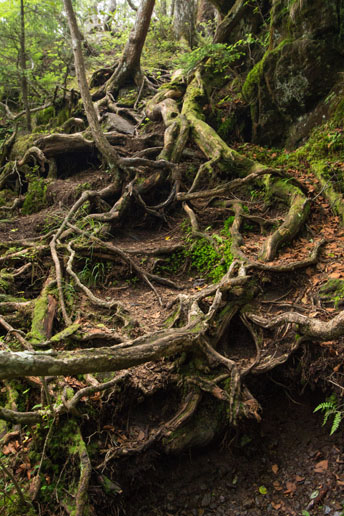 さらに先は少々荒れ気味の登山道でした。木の根や倒木で歩きにくい道を進みます。