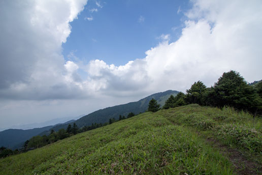 この稜線をずっと歩いて世界遺産の山までいってみたい。