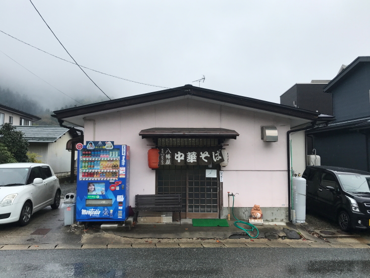 八幡屋へ向かう道は狭く、山へ向かって緩やかに登っていく。周囲は緑が豊かだ。まもなく市街地が終わり山へ入る手前に八幡屋はあった。ラーメン屋があるロケーションではない。