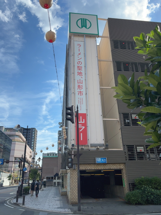 県内には地域ごとに特徴のあるラーメンがあり、昔ながらの店がいまでも強く支持されて地元民と観光客で混み合っている。そんな山形県の中でも山形市は「ラーメンの聖地」を自称していて、市役所隣接の立体駐車場には、「ラーメンの聖地」と大きく掲げられていた。
