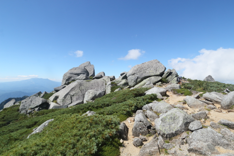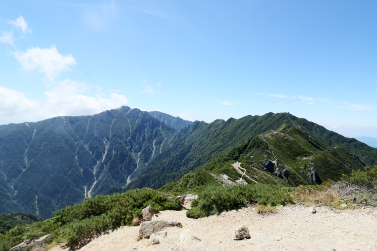 だが景色は抜群だ。こんな最高の一日に歩ける幸せを噛みしめる。アルプスの稜線を歩くなら天気の良い日に限る。これが荒天だと、天国から地獄だ。
