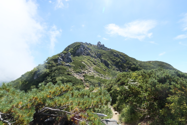 ようやくにして山頂が見えてきた。あれだ、あれに間違いない。もう、あれにしてくれよ。まだ距離があるが、あそこまで歩けばこの長い長い縦走も終わる。