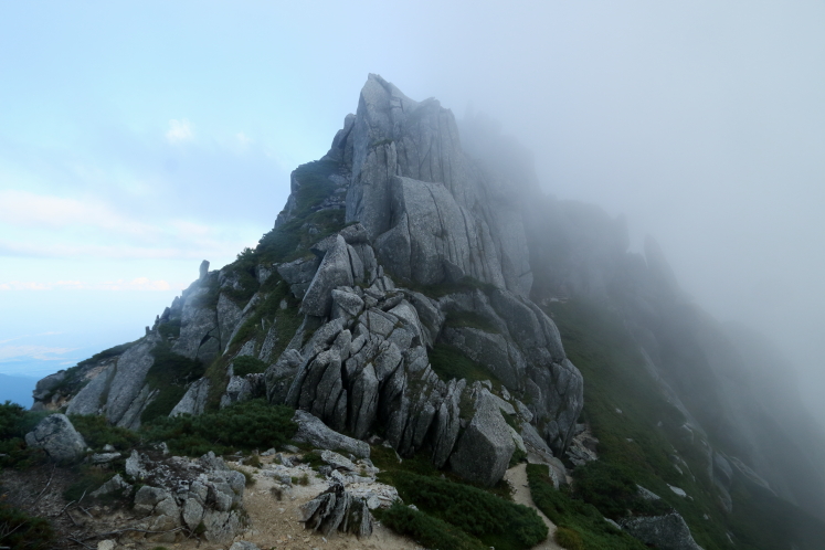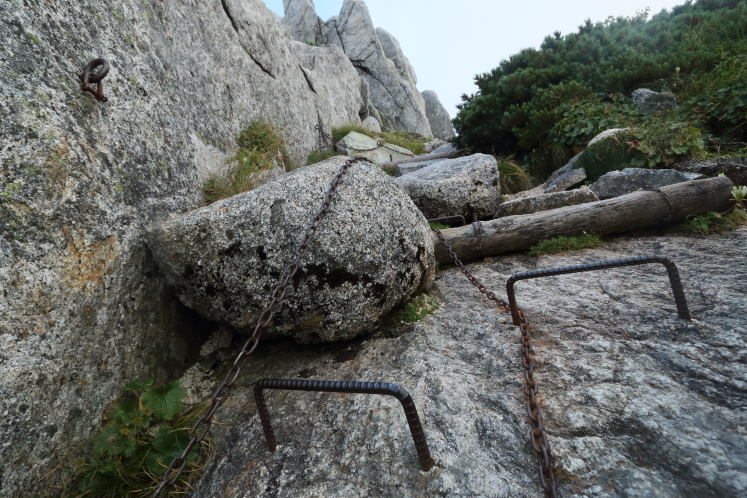 ここまで危険な箇所は無かったが、この最後の岩稜地帯だけは失敗したら大惨事ではすまない。とはいっても普通に歩けばなんということもない簡単な岩なのだか、疲れ切った最後にこれは厄介だし気が滅入る。尽きかけている集中力を絞り出さなければならない。