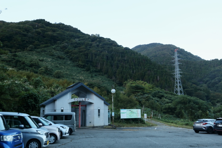 ショボそうだから登山者なんていないだろうと思って来たら、意外にも駐車場はほぼ満車になっていた。早朝にもかかわらず多くの登山者がやって来るのは、さすが日本百名山だ。