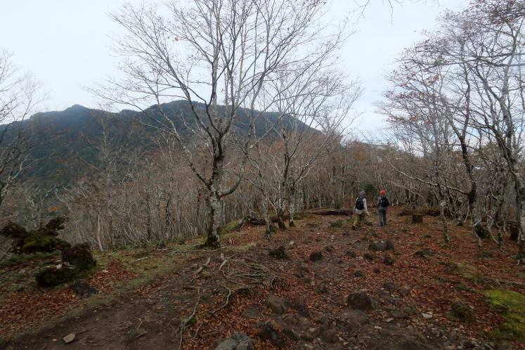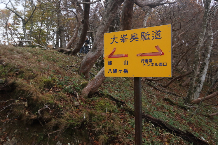 登山口から少し登っただけで、あっさり奥駈道に合流した。稜線は平坦で、縦走路とはいえ楽に歩ける。予想通り登山者は多いものの渋滞するほどではない。