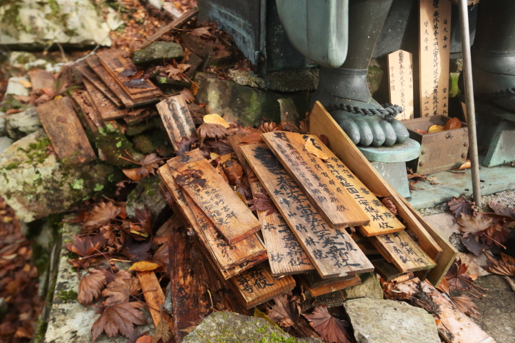 かつての宿跡や山伏が行場に納めた木札など、ところどころに信仰の痕跡が見られる。やはりここはレジャーの場であると同時に、いまでも生きている修験の道場なのだ。とはいえ近畿圏最高峰であり日本百名山でもある山を有する山域だ。登山道はよく整備されていて、修験者が修行するような荒々しさはない。