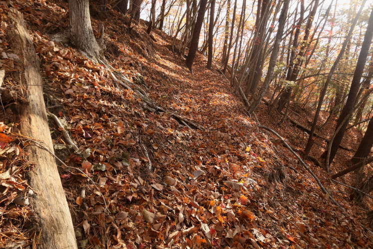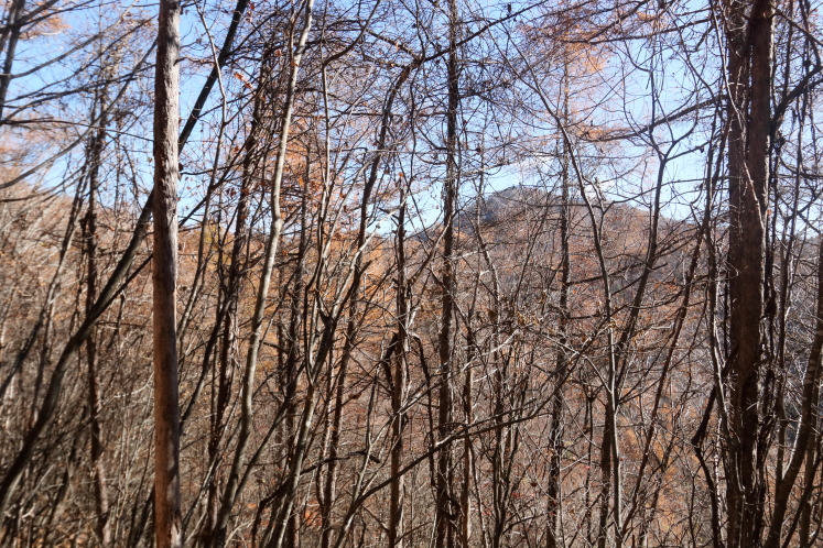 登山口の紅葉は見事に染まっていた。これはいい感じだなと登っていくが、登るにつれて紅葉は終盤になり、山頂ではすっかり終わっていた。