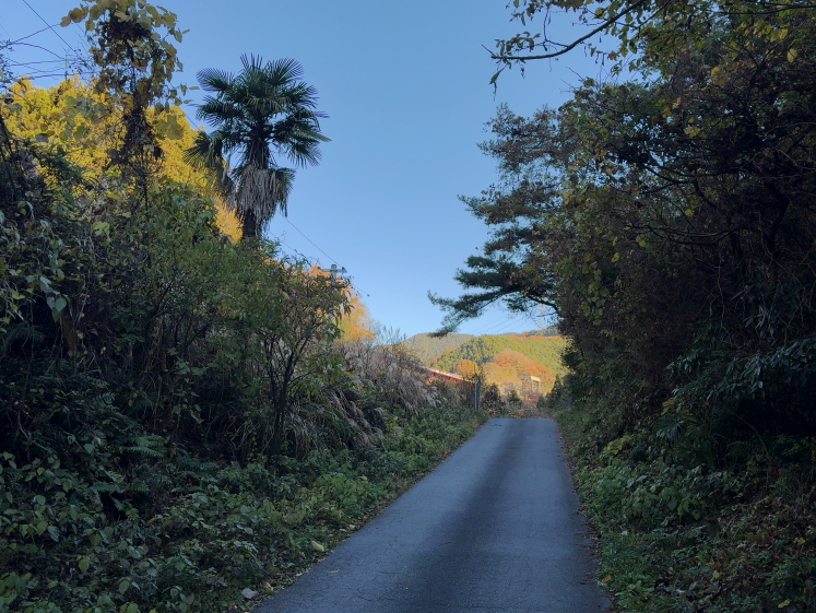 早朝の相模湖駅で待ち合わせして小仏峠へと歩いていく。秋晴れの週末だから高尾山は激混みだろうが、こちら側は誰も歩いていない。