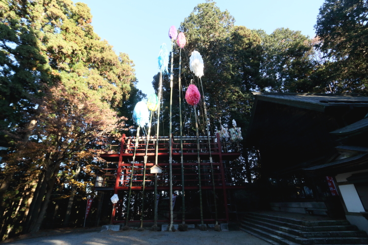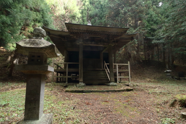杉の樹林帯を抜け、長くて不安定な石段を登っていくと、ひっそりとした神社があった。