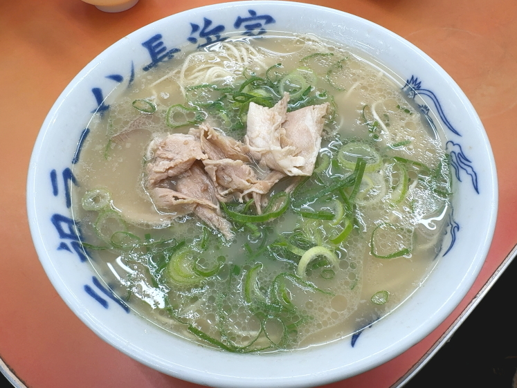 確認のために麺普通も食べてみた。こちらは芯まで水分が吸収されている。極細で低加水の博多ラーメンをこれほど完璧に茹で分けるのは職人技だ。