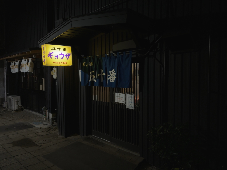 さて、夜は何を食べよう。行きたい店があったのだが、候補の一番手も二番手も正月休みだった。行くあてを失って、ぶらぶら歩いて良さげな店を探していると、五十番ギョウザの看板に明かりが灯っているのを見つけた。のれんも出ている。やってるんだ。