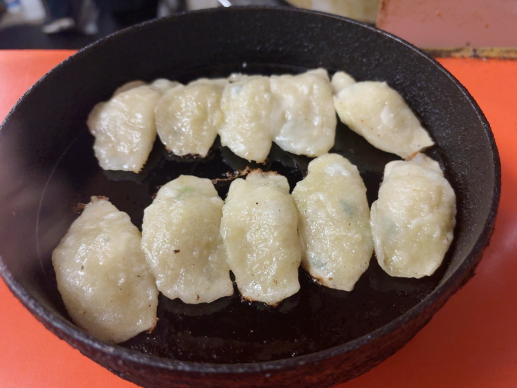 一年ぶりの五十番の餃子は、記憶の味そのままだった。一人前ごとに熱々に熱した鉄鍋で焼かれた餃子を、辛味を加えたタレに浸して食べる。