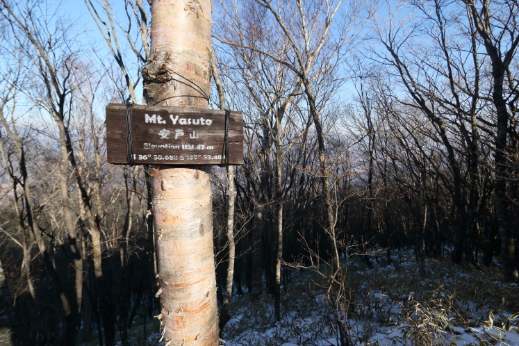 ロープを頼りに急登を登ると安戸山の山頂だった。ここまで2時間20分。帰りは下るだけだから、16時には下山できる。時間に余裕ができたので、山頂でゆっくりしていこう。