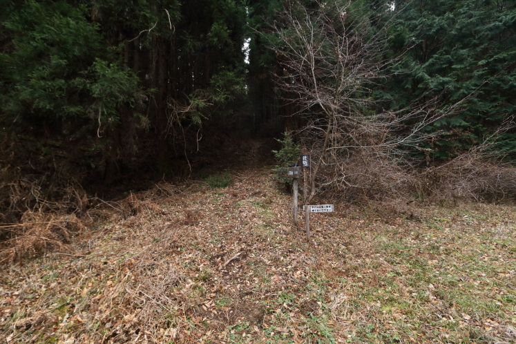 林道を歩いて登山口へ向かう。この林道が意外と長い。30分ほど歩いたところで、7、8台くらい停められそうな駐車スペースがあった。なんだ、ここまで車で入れるじゃないか。でも、ここに駐車スペースがあるのに、なぜ集落にだだっ広い駐車場があるのだろう。花瓶山って、そんなに人気の山なのか?