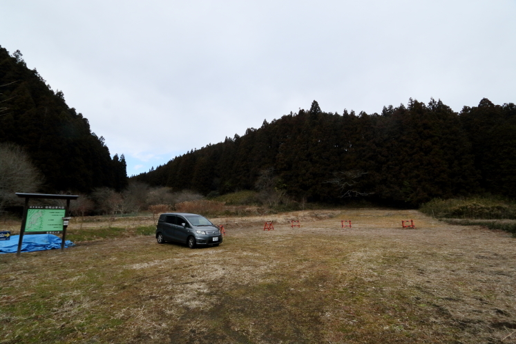 集落のはずれの登山者用の駐車場に車を停めた。花瓶山というマイナー山の駐車場にしては、分不相応なほどに広い。当然ながら、他に停まってる車はない。