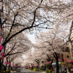 桜のトンネルをくぐり、桜並木 ...
